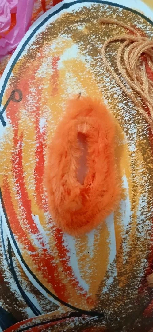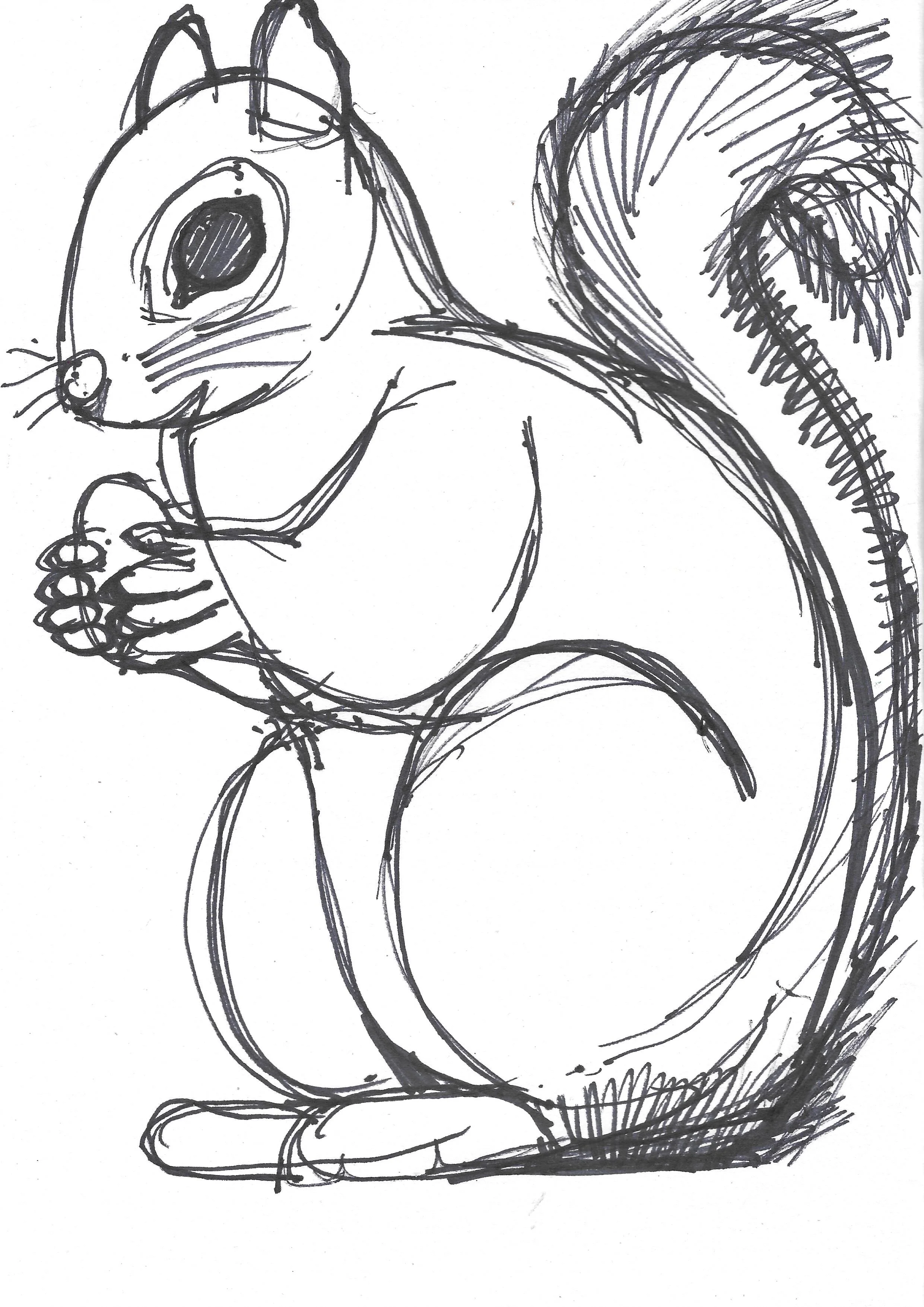 Colour in all parts of the squirrel and features with paint sticks, using a combinations of orange, red, brown.
