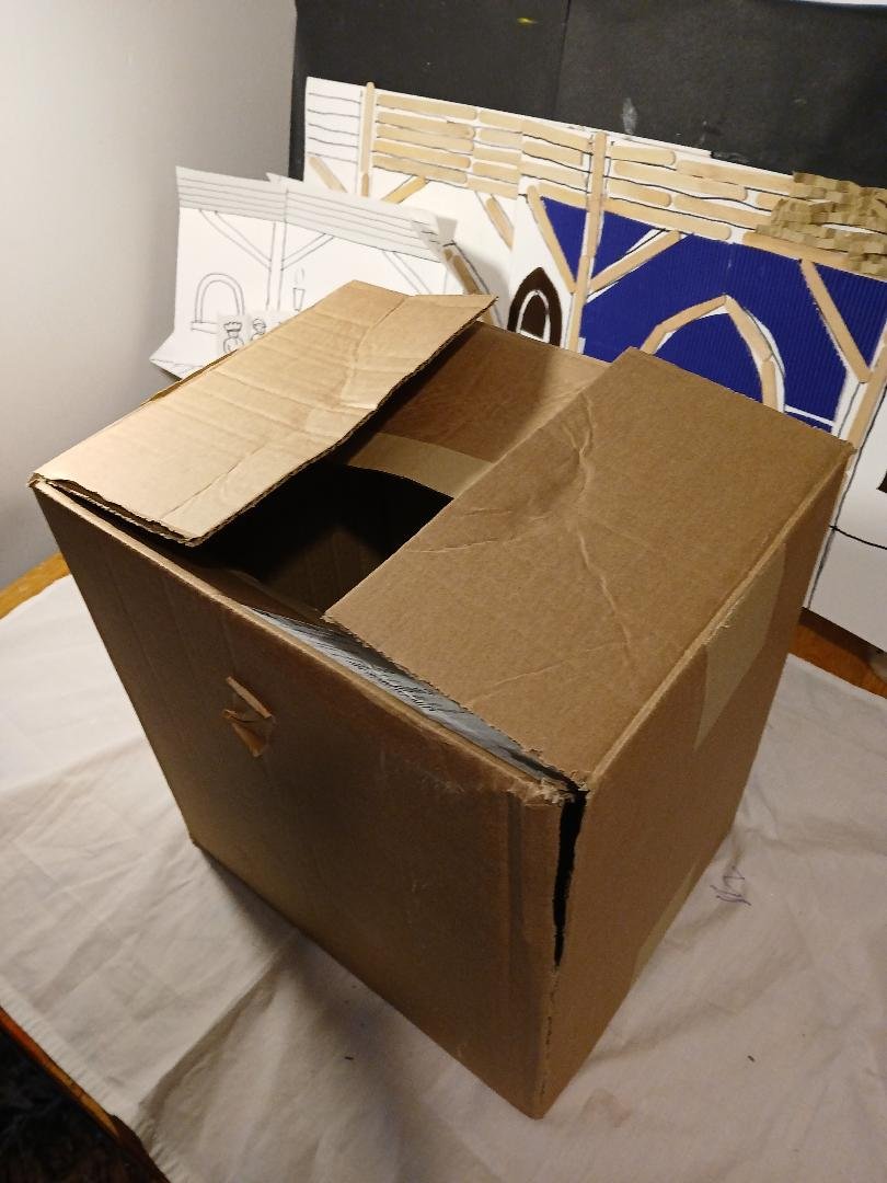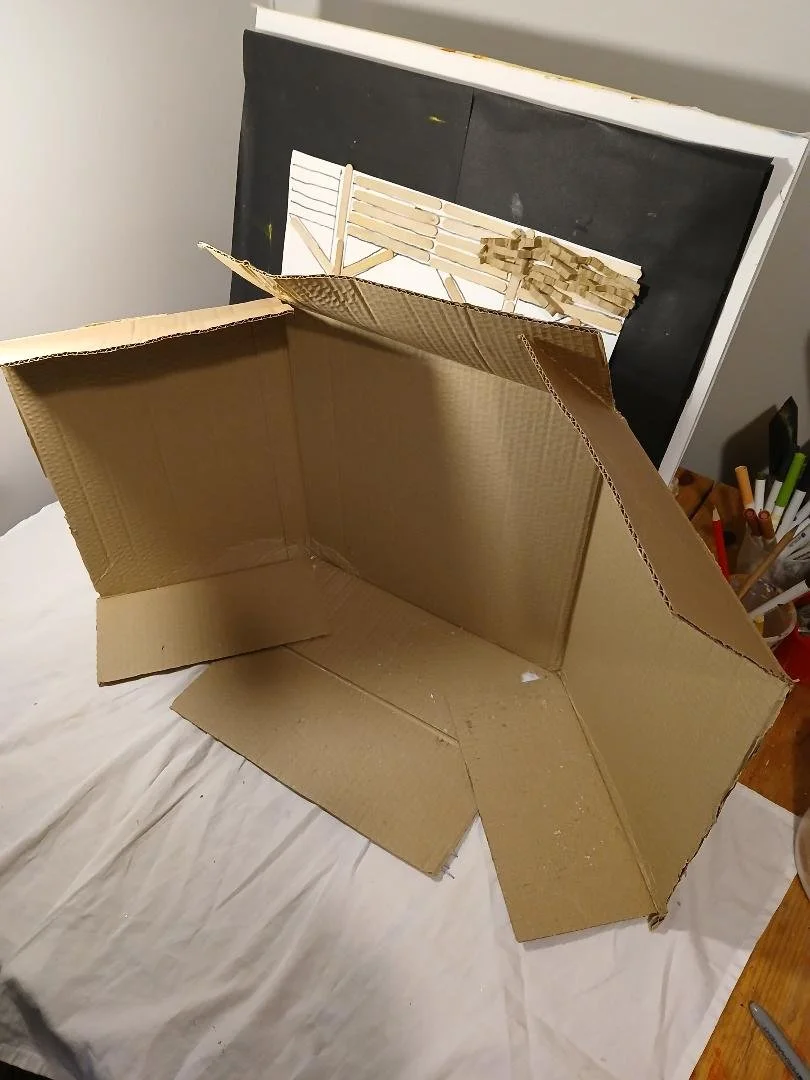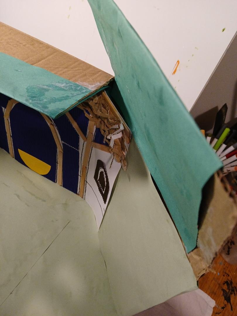 Add more corrugated card - purple, or brown, to the main central part of the stables.