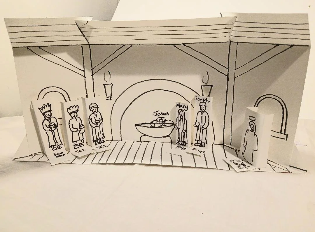 Initial sketch layout for the Nativity scene for the Christmas project.