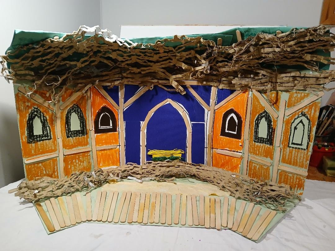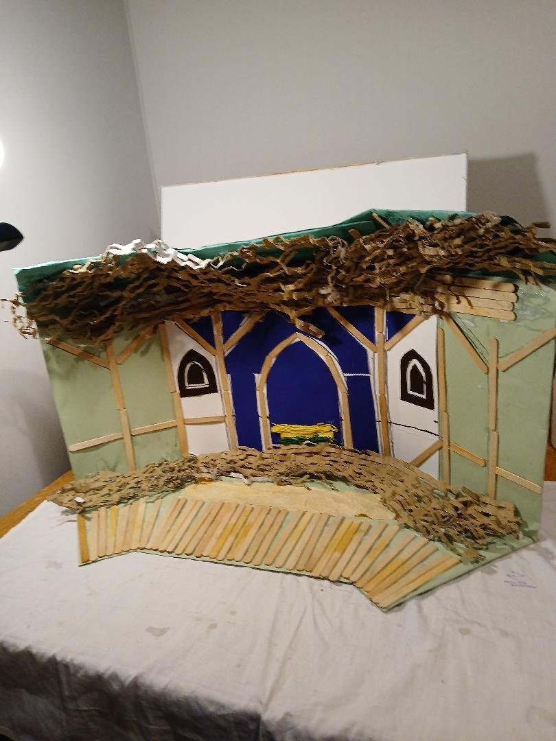 Add arches to the left and right areas and the cradle to the central arch with corrugated card.