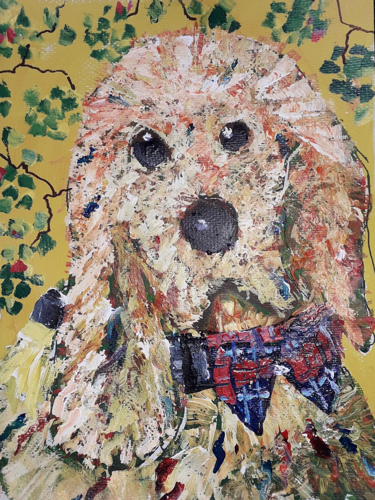Jemima used a variety of painting techniques to make this amazing painting of her Cocker Spaniel called Toby.
